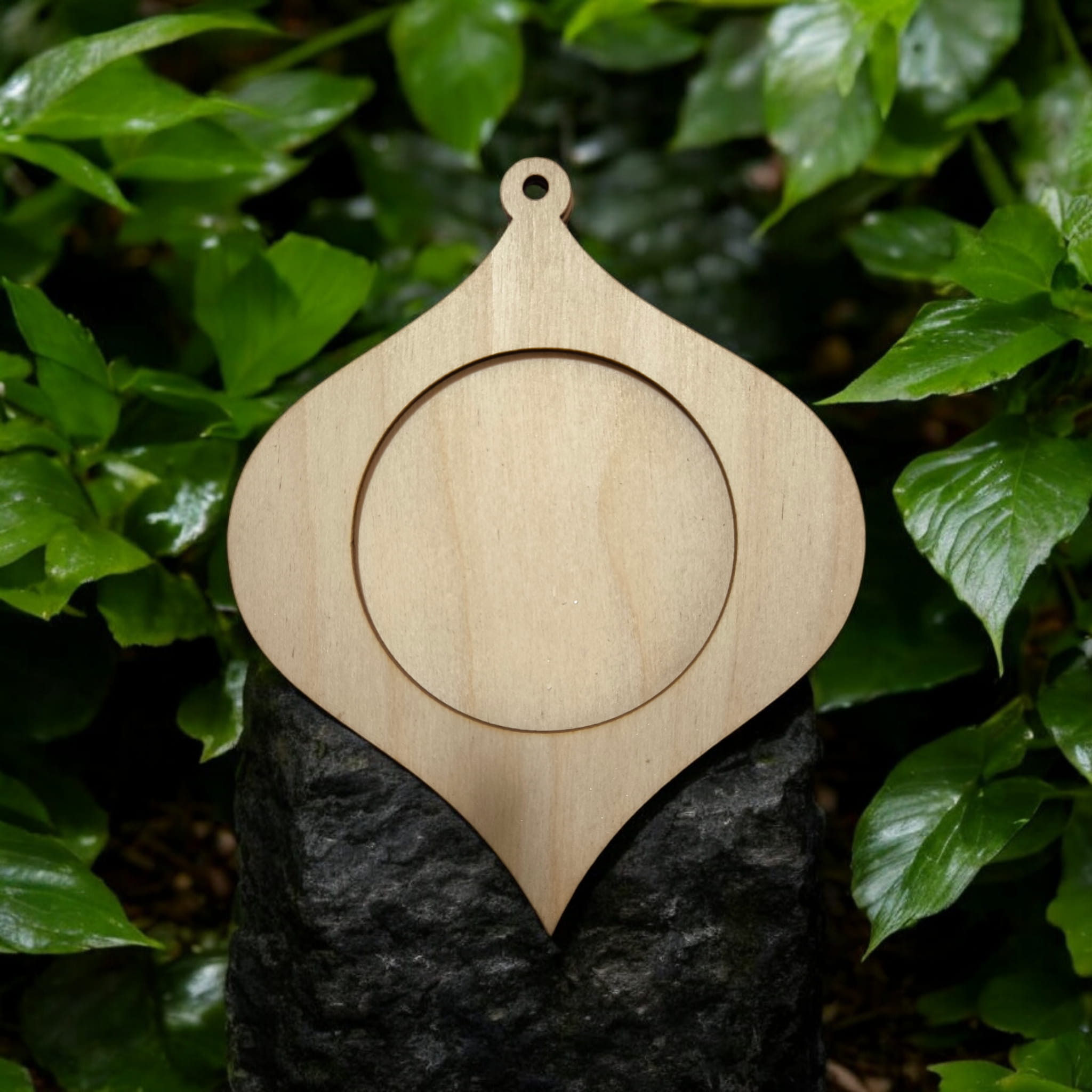 Przedmiotem sprzedaży jest bombka zawieszka w kształcie łezki z ramką wykonana ze sklejki o grubości 3mm .