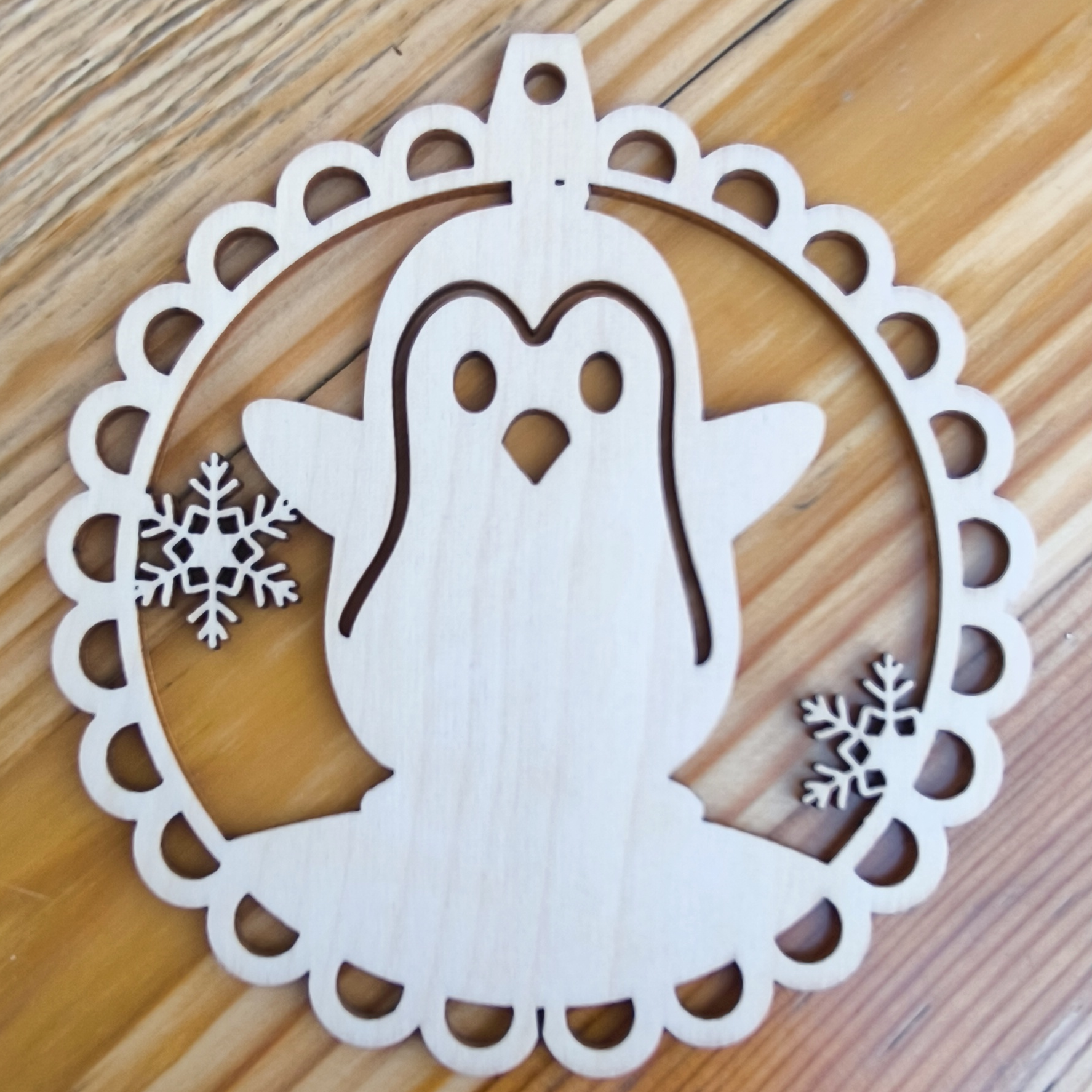 Bombka ażurowa z pingwinem i śnieżynką